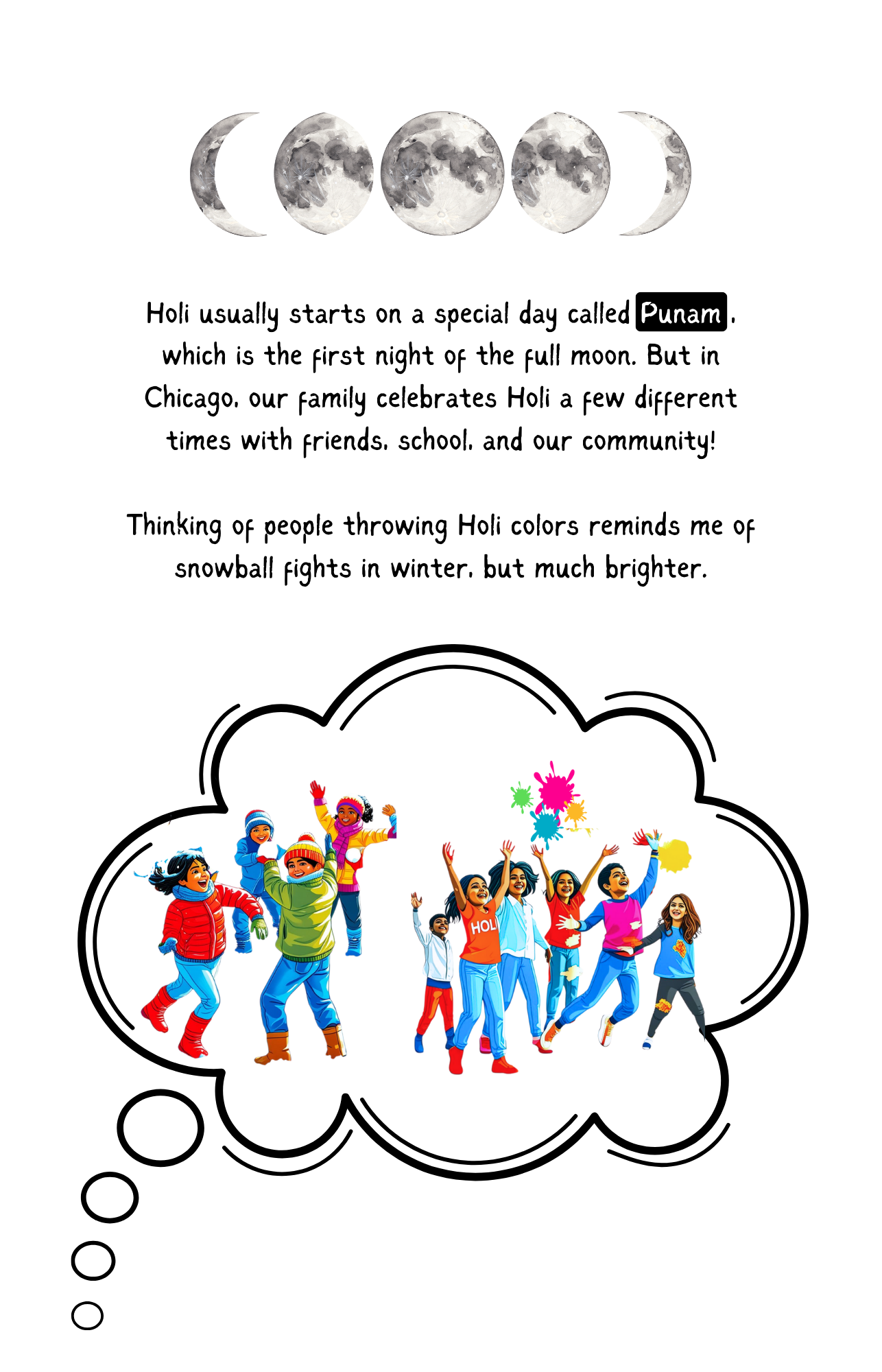 Jaiyen and Kishyn are eager to share how they celebrate Holi, the Festival of Colors, with their community. From home, to school, to the iconic Chicago Landmark of Navy Pier – Holi celebrations have a significant impact on their lives. They have created traditions which are unique to them, especially being US-born, Indian-Americans. Jaiyen and Kishyn look forward to sharing their traditions with friends and family around them. Will you join the celebrations and learn about Holi with them?